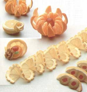 taierea perpendiculara a rondelelor, obtinem elemente de ornare pentru marginile paharelor sau rondelele se taie pana la mijloc si se rasucesc in parti opuse, sau se impart in cateva bucati. Lamaile se folosesc la ornarea tartinelor, bucatelor din peste s.a.