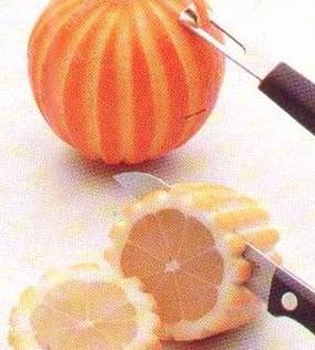 Cu cutitul de razuire a liniilor pe coaja fructelor de lamai si portocal, apoi prin