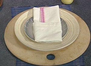 Vesela pentru fiecare persoana se plaseaza pe servetele mici din material.