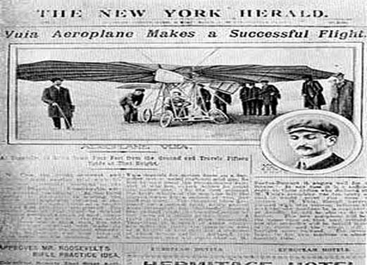 Beaucoup de journaux en France, aux USA, et au Royaume-Uni ont crit au sujet du premier homme à la mouche avec une machine de lourd-que-air avec leurs propres enlèvent des systèmes, des units de propulsion et le train d'atterrissage. La chose qui a t souligne depuis au sujet de l'accomplissement de Vuia, est que sa