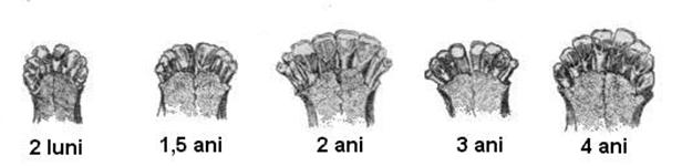Dupa varsta de 8 ani se niveleaza si laturasii, aprecierea varstei devenind dificila si aproximativa (fig. 3).
