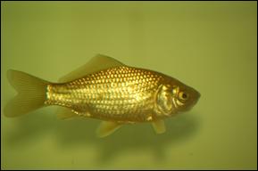 Corp turtit lateral cu solzi mari de culoare aurie.