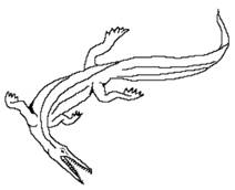 Mesosauride (Mesosauria) - reprezinta primele amniote complet adaptate la viata in mediul acvatic. Ele sunt cunoscute prin g. Mesosaurus descoperit in P inf (Fig. 25). din Africa de Sud si America de Sud. Mesosaurus este o forma zvelta, de aproximativ 1m lungime, din care aproape jumatate revenea cozii aplatizata lateral. Maxilarele purtau dinti numerosi foarte lungi si ascutiti care formau un fel de cos sau gratar prin care apa era filtrata, hranindu-se cu mici nevertebrate sau cu plancton in general. Membrele nu erau insa foarte mult modificate pentru inot. Prezenta resturilor de Mesosaurus pe cele doua margini ale Atlanticului a fost utilizata ca dovada ca suport in sustinerea teoriei driftului continental.