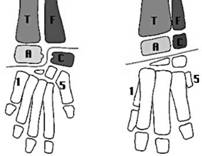 CRUROTARSI ORNITHODIRA (crocodili) (dinosauri) glezna de tip crurotarsal glezna de tip mesotarsal Figura 31. Strucura specializata a gleznei: T - tibia; F - fibula; A - astragalus; C - calcaneum; 1-5 oasele meta-tarsiene. |