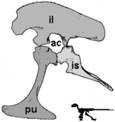 -Saurischia - la care pelvisul are o structura triradiata: ilion-dorsal; pubis-ventral-anterior; ischion-ventral-posterior. "Saurischia" = cu centura pelviana asemanatoare cu cea a soparlelor.