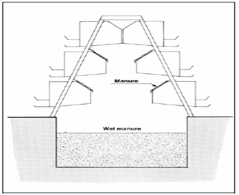 Exemplu de groapa deschisa pentru dejectii aflata sub o baterie in forma de treapta
