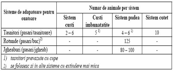 Numarul de animale pentru sistemul de adapatori in diferite cotete