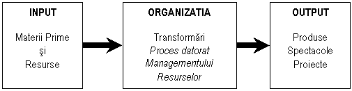 Produsul unei organizatii de arta poate fi un spectacol de interpretare sau o manifestare artistica. Factorii de mediu inconjurator care vor influenta o organizatie vor fi de natura economica, politica, culturala, demografica si tehnologica, iar supravietuirea ei depinde de capacitatea de adaptare la acesti factori. Managerii vor trebui sa-si foloseasca toata priceperea pentru a utiliza potentialul de specialisti de care dispun, pentru a stapani factorii de mediu care prezinta mereu noi oportunitati si amenintari.