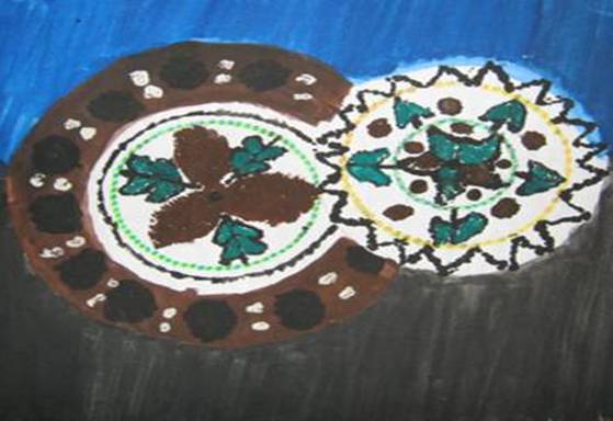 Ø siruri de puncte de aceeasi marime, dar de culori diferite, prin alternanta sau grupare de puncte mai mici in jurul unui punct mai mare;