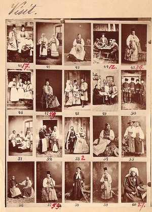 In albumul dariut Principei Elena Cuza, continand 55 de imagini in format "carte-de-visite" sunt reprezentate figuri de oameni din popor si costume nationale.