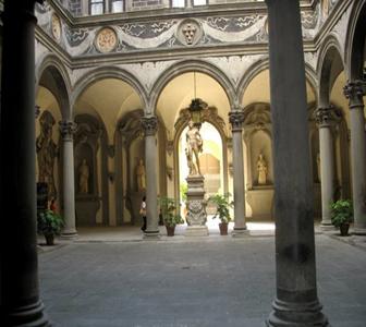 Tipologia palatului renascentist se configureaza treptat , printr-un process de agregare naturala a "caselor cu curte' medievale . Era vorba de locuinte organizate in jurul unei curti , care sfarsea prin a ingloba turnuri si alte structuri , alcatuind un complex unitary , compus adesea din ateliere sau magazine la parter si camere de locuit la etaj .