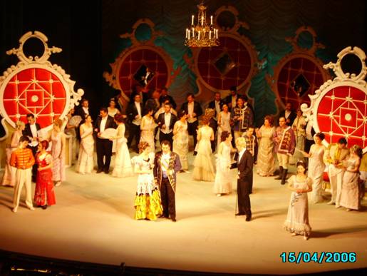 Dacǎ tot am vorbit despre muzicǎ,vǎ dezvǎlui cǎ am fost si la operetǎ.O experientǎ unicǎ si frumoasǎ, si o piesǎ exceptionalǎ,numitǎ "Sange Vienez",ce contine trei acte.Jocul impecabil al actorilor,claritatea versurilor si a replicilor,decorul, costumele si muzica au fǎcut aceastǎ operetǎ de Johann Strauss-fiul sǎ strǎluceascǎ.Am rǎmas plǎcut impresionatǎ si de sala Teatrului National.O clǎdire impresionantǎ,cu un decor magnific.Mici ingerasi imbrǎtisau tavanul,care era impodobit cu aur si picturi de exceptie.