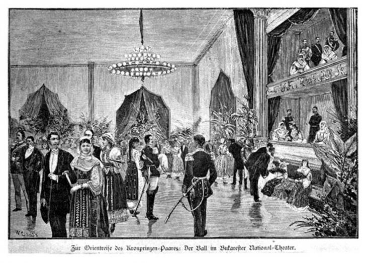 In 1884 printul si arhiducele Rudolf de Habsburg, mostenitorul coroanei Imperiului Austro-Ungar viziteaza Romania si in onoarea sa Familia Regala organizeaza un bal la Teatru :