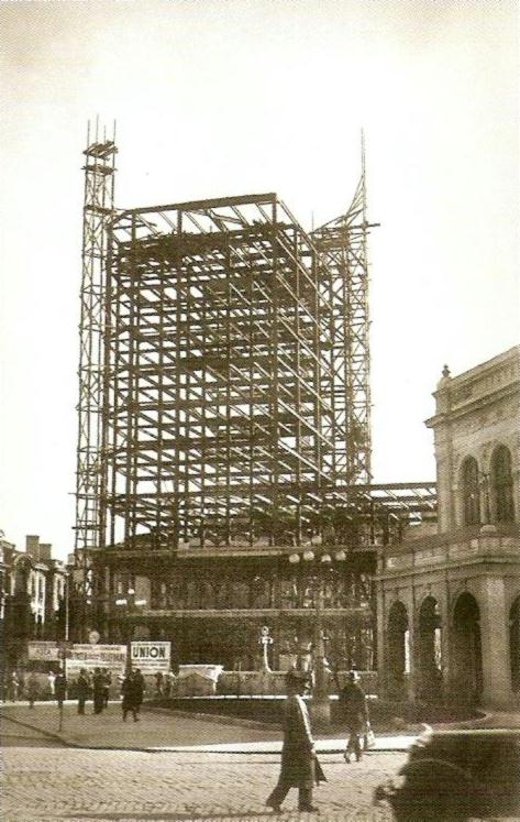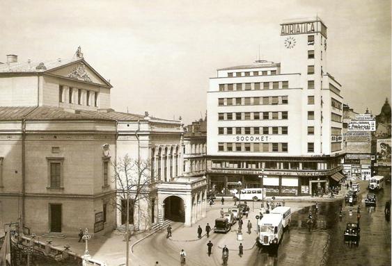 In 1933 au avut loc proteste de strada legate de construirea primului zgarie-nori bucurestean, Palatul Societatii de Telefoane, in vecinatatea Teatrului National :
