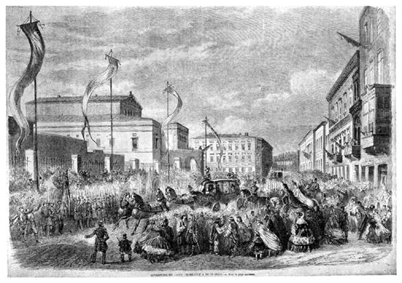 Cezar Bolliac scria in ziarul sau Trompeta Carpatilor : afluenta publicului fu atat de mare, incat pretul unui bilet de intrare se urca pana la un galben pentru un loc la parter. Lojile scanteiau de luxul poleielilor si de toaletele elegante ale doamnelor, ale caror parure pretioase reflectau razele nenumaratelor lumini si semanau cu niste fluturi intr-un stup de albine .