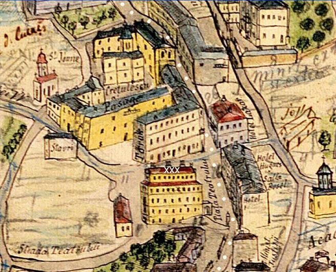 Intr-o alta litografie [1866] observam alaturi de Teatru, Casa Torok :