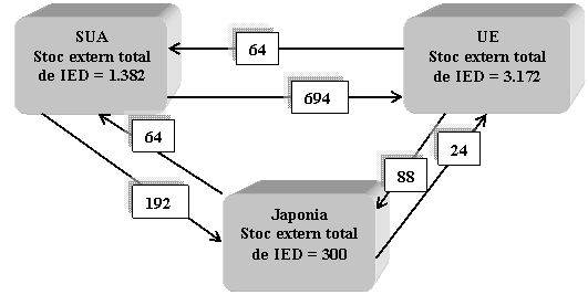 In figura 2.1. sunt reprezentate fluxurile ;i stocurile externe reciproce de IED in cadrul Triadei (SUA, UE, Japonia).