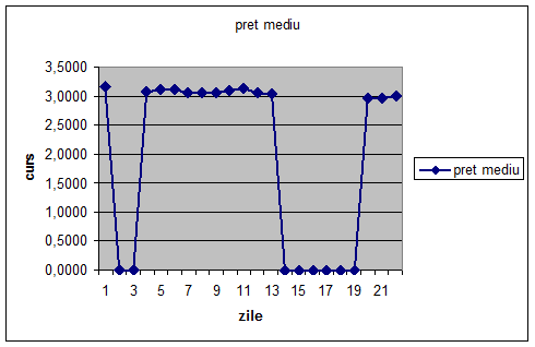 In perioada analizata ies in evidenta doua scaderi bruste, un minim in care valoarea actiunilor scade la 0 in data de 02 si 03.11.2006, dar si pe parcursul mai multor zile, in 14, 15, 16-19.11.2006 in afara acestor perioade de scadere brusca pretul actiunilor se mentine la un nivel constant, ceea ce arata totusi un oarecare interes pentru acest titlu.