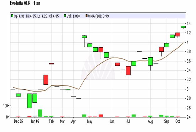 Asa cum se observa si in graficul preluat de la BVB, media mobila ponderata are o evolutie crescatoare, in momentul de fata situandu-se pe un trend crescator.