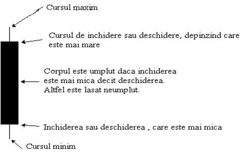 un dreptunghi vertical (corpul), ale carui limite sunt date de cursurile de inchidere si de deschidere ale zilei respective.