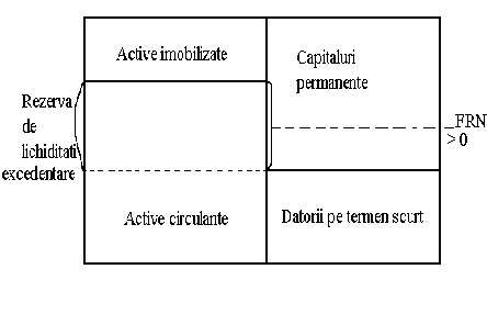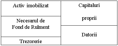 Rezulta din acest caz, ca mijloacele permanente trebuie finantate din capitaluri permanente (capitalurile proprii si datoriile pe termen mediu si lung). Excedentul de capitaluri permanente fata de activul imobilizat se numeste Fond de Rulment. Acest excedent trebuie sa acopere Necesarul de Fond de Rulment al Exploatarii, care asa cum am vazut, reprezinta un mijloc permanent. Existenta unui sold conduce la o trezorerie pozitiva, care va putea face fata variatiilor Necesarului de Fond de Rulment al Exploatarii: