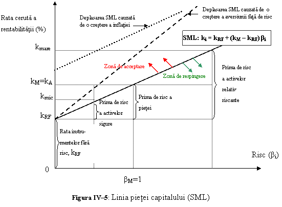 SML arata modul in care investitorii sunt dispusi sa faca compromisuri intre risc, masurat de coeficientul beta, si rentabilitatea estimata. Cu cat este riscul mai mare, cu atat mai mare este rata rentabilitatii necesara pentru a compensa investitorii pentru asumarea acestui risc. SML specifica natura acestei relatii.