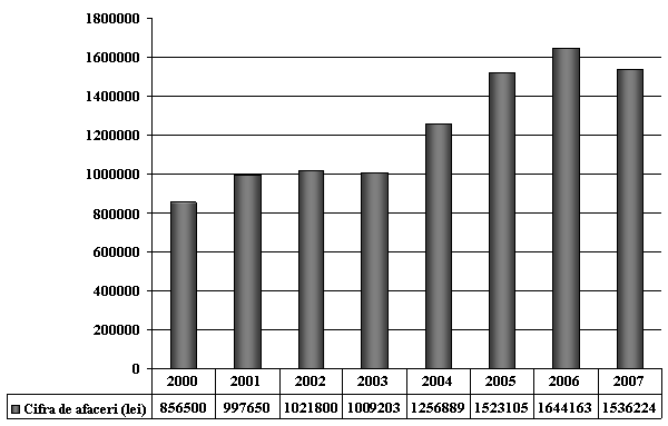 Cel mai ridicat nivel al cifrei de afaceri a fost inregistrat in anul 2006, iar scaderea inregistrata in anul 2007 poate fi explicata prin armonizarea politicilor intreprinderii cu normele europene si cu noile reglementari, odata cu aderarea Romaniei la Uniunea Europeana.