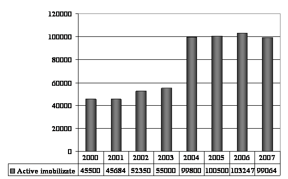 Fig. 1.3.3. Evolutia activelor imobilizate pe perioada 2000- 2007 a S.C. Sakita Impex S.R.L.