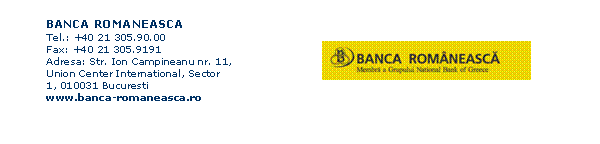 In octombrie 2003, cel mai mare grup financiar din Europa de Sud-Est, Grupul National Bank of Greece (NBG), a achizitionat pachetul majoritar la Banca Romaneasca S.A., detinand in prezent 88,7% din capitalul social al acesteia. Banca Europeana pentru Reconstructie si Dezvoltare (BERD) este un alt actionar important, detinand 10,18% din capitalul social al bancii.
