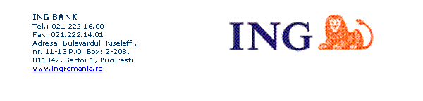 ING Bank Romania este singura banca de pe piata care beneficiaza de ratingul `AA`, acordat de agentia internationala Standard & Poor`s. Acesta confera ING Bank statutul de institutie financiara care furnizeaza clientilor o securitate financiara excelenta.