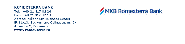 ROMEXTERRA BANK S.A. (Banca de Credit si Dezvoltare ROMEXTERRA S.A.) a fost infiintata in anul 1993 din initiativa a 1068 fondatori, persoane fizice, salariati in industria gazului metan, cu sprijinul efectiv al conducerii Societatii Nationale a Gazului Metan - ROMGAZ - S.A. Banca a devenit operationala incepand cu luna martie 1994 cand a fost autorizata definitiv de catre Banca Nationala a Romaniei.