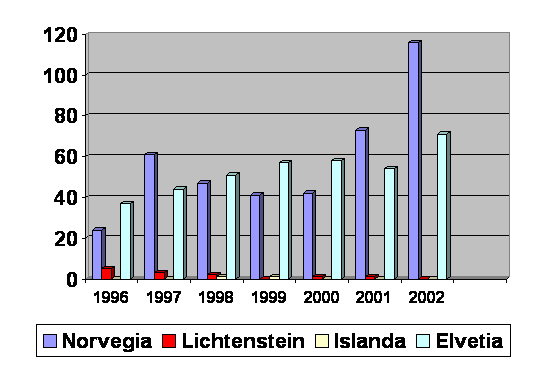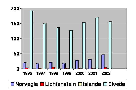 Din datele prezentate mai sus privind relatiile comerciale ale Romaniei cu tarile membre AELS se constata ca s-a inregistrat o scadere a importurilor, si a exporturilor in anul 1999, dupa care volumul acestor operatiuni a crescut ajungand in anul 2001 la 127 milioane USD exporturi si 201 milioane USD importuri, iar in anul 2002, 187 milioane USD exporturi si 205 milioane USD importuri. Dintre tarile membre AELS, Romania efectueaza cele mai mari exporturi cu Elvetia. Astfel, cel mai mare volum al exporturilor cu aceasta tara s-a inregistrat in anul 2000 de 58 milioane USD in anul 2002 volumul a fost de 71 milioane USD.