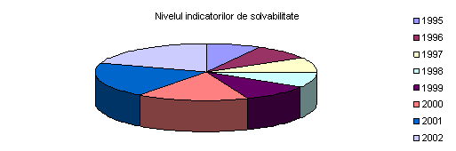 La 31.12.2002, nivelul agregat al indicatorilor de solvabilitate era de 24,8%, fiind astfel cu mult peste limita de 12% ceruta de reglementarile BNR sau minimul de opt la suta acceptat pe plan international. Cresterea puternica a indicatorului de solvabilitate in ultimi doi ani reflecta in principal masurile de recapitalizare a unor banci cu capital de stat si majorarea capitalului minim obligatoriu impusa celorlalte banci de BNR.