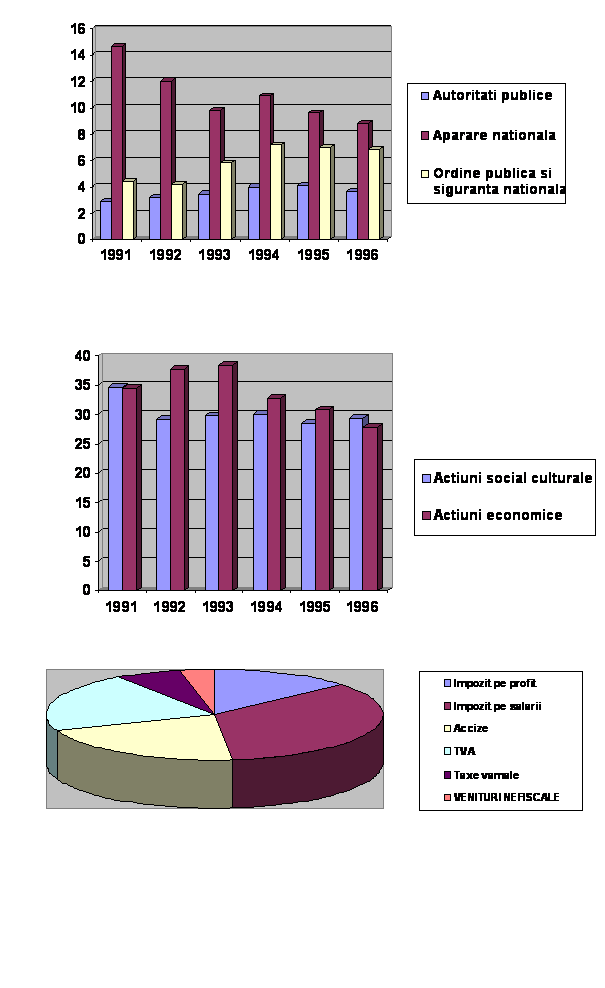 Structura bugetului de stat al Romaniei pe perioada 1991 1996 este prezentata in tabelul urmator :