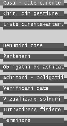 Urmatoarele 3 submodule (Parteneri, Obligatii de achitat, Achitari obligatii) au fost prezentate in descrierea modulului de Gestiune cantitativa si se regasesc aproape in toate modulele (in afara de Deschidere sesiune, Balanta si Utlitare) pentru o cautare a unor informatii cat mai repede si cat mai aproape de zona de lucru fara a mai fi necesara cautarea acestora in modulul Urmarire obligatii.