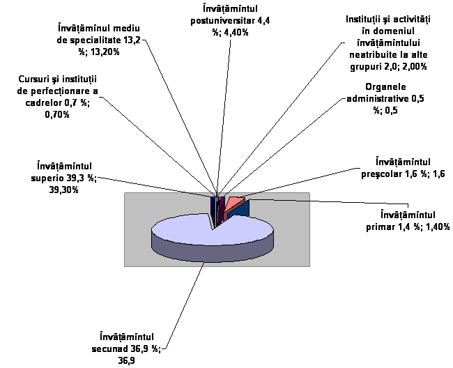 Invatamant total inclusiv: -invatamant mediu -invatamant superior - invatamant postuniversitar -cursuri de institutii de perfectionare a cadrelor -institutii in domeniul invatamantului neatribuite la alte grupuri -invatamantul mediu de specialitate -organele administrative |