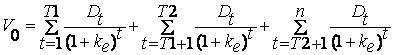 Acest model ia in calcul trei perioade diferite de crestere: - crestere stabila pentru T1 ani, - crestere redusa pentru T2 ani; - crestere zero, cu profituri nete constante pe un orizont de timp nedefinit.