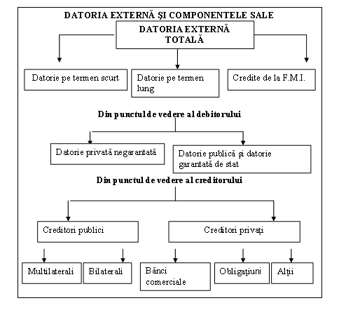 Datorita faptului ca, in calitate de beneficiari ai imprumuturilor externe, pe langa autoritatile publice centrale, unitatile administrativ teritoriale, intreprinderi de stat si institutii de drept public apar persoane fizice sau juridice de drept privat, notiunea de datorie externa nu se suprapune cu cea de datorie publica externa.