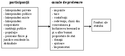 Mobilizarea resurselor banesti la dispozitia statului are loc pe seama produsului intern brut prin transfer de resurse si, implicit de putere de cumparare, de la persoane fizice si/sau juridice la dispozitia organelor administratiei de stat centrale si/sau locale. Din fondurile astfel constituite la dispozitia statului, se efectueaza transfer de resurse (de putere de cumparare) in favoarea diversilor beneficiari, persoane fizice si juridice. Fluxurile de resurse banesti care iau astfel nastere se deruleaza, asadar, in dublu sens, de la persoanele fizice si juridice, catre fondurile financiare publice si invers, generand relatii economice de repartitie intre participantii la acest proces.