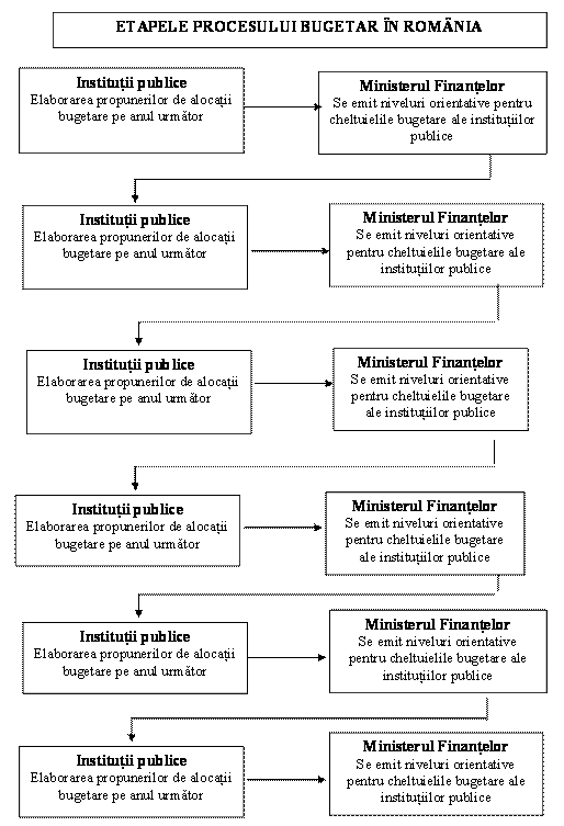 In concluzie, pentru tara noastra, etapele procesului bugetar[1] pot fi schematizate astfel: