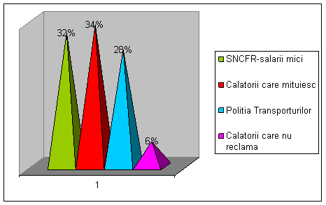64 % dintre intervievati aproba in totalitate afirmatia " Personalul de tren ia mita de cele mai multe ori decat sa actioneze in consecinta ( bilet contraventional+proces verbal)" iar 34 % considera ca vinovati de comportamentul antisocial al angajatilor CFR sunt calatorii care-i mituiesc, incurajandu-i.