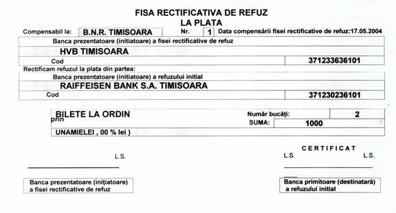 b) Sa numere instrumentele de plata compensabile refuzate ;