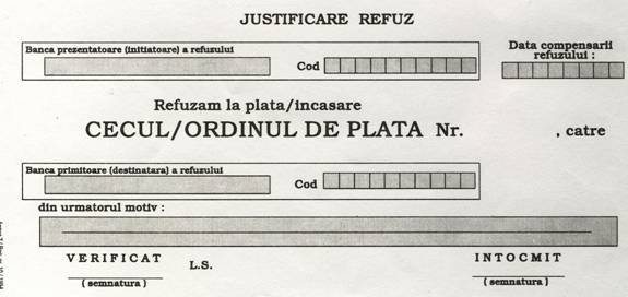 In cazul in care exista refuz de plata initiat de unitatea bancara platitoare, acesta se primeste in sedinta de compensare, si agentul de compensare are obligatia sa verifice toate elementele ce trebuie sa le contina un refuz de plata;