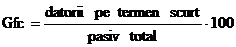 Este raportul dintre datoriile la termen si capitalul propriu sau permanent. Se calculeaza tot in doua variante: