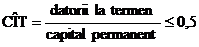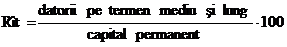 Rata indatorarii la termen (Rit) reflecta masura in care datoriile pe termen mediu si lung participa la formarea resurselor permanente: