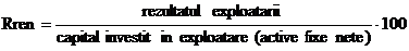 c) Rata rentabilitatii economice nete (Rren) exprima cat profit brut din exploatare revine la o unitate de capital investit, in cadrul activitatii de exploatare: