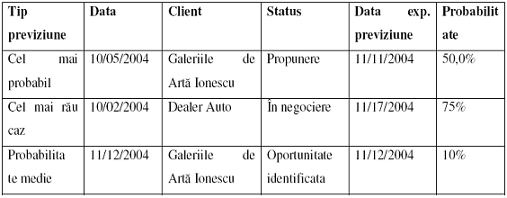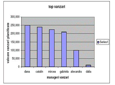 Previziuni pentru vanzarea incrucisata. Previzioneaza ce produse i se pot oferi clientului intr-o perioada viitoare. In figura nr. X este prezentat un exemplu de clasament in domeniul vanzarilor realizat in functie de volumul de vanzari planificate.