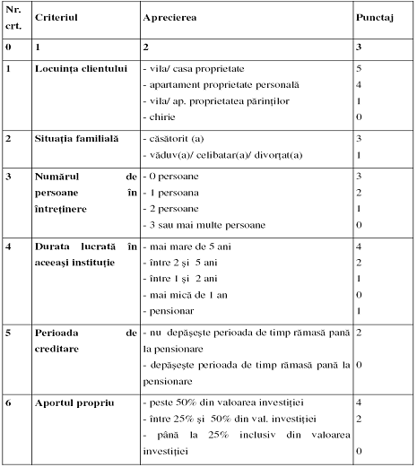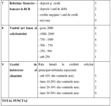 Tabel nr. 3- Exemplu de calcul scoring pentru persoane fizice