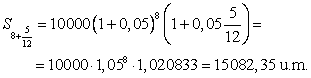 unitati monetare plasate timp de 8 ani si 5 luni cu procent anual 5%. Deci