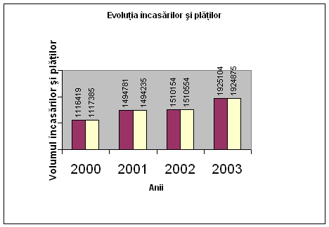 Evolutia incasarilor si platilor in cadrul Sucursalei CEC Bistrita in perioada 2000 - 2003 se prezinta astfel :